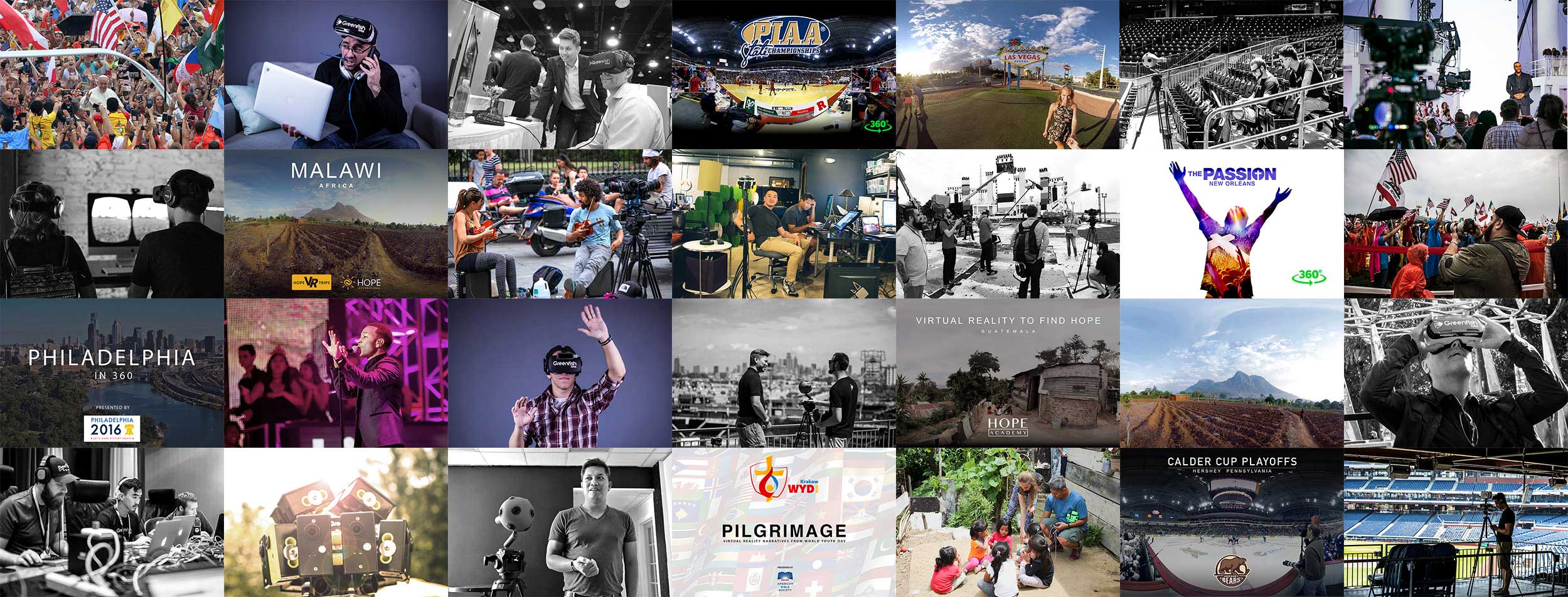 This collage highlights the breadth of the Greenfish Labs portfolio. As Founder and CEO, Ben Duffey led his team in executing complex, high-stakes productions, from live 360° events for major brands to immersive storytelling on location around the world.